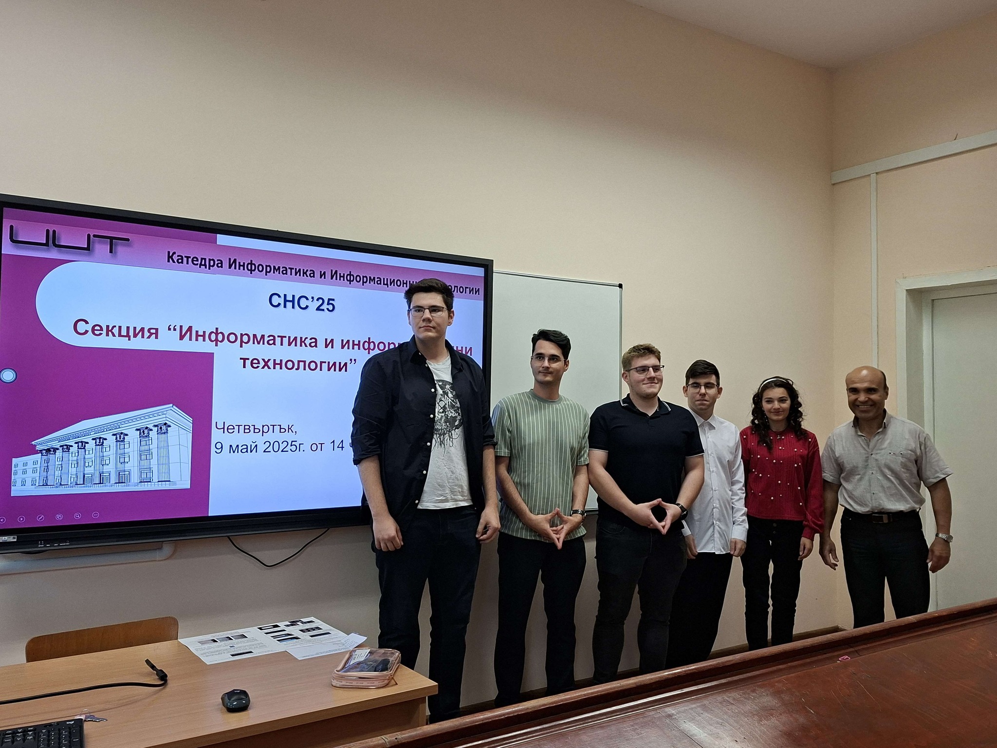 На 8.05.2025 г. се проведоха традиционната Студентско-докторантска научна сесия и Вечер на специалностите на катедра ИИТ. В секция „Информатика" на СНС е с научен секретар проф. д-р Цветомир Василев, бяха изнесени 4 научни доклада: