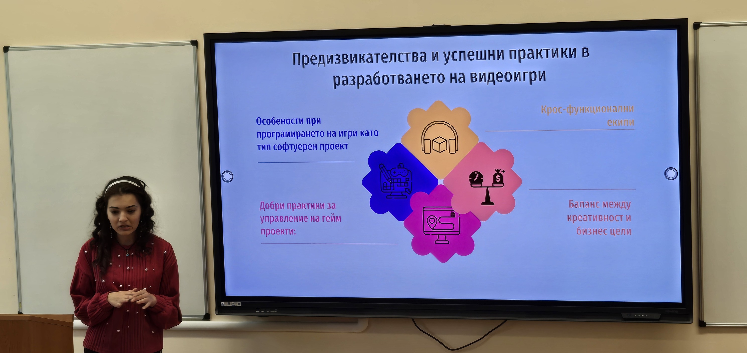 На 21.05. 2025 г. в катедра „Информатика и информационни технологии" към Русенски университет „Ангел Кънчев" бяха представени студентски разработки на  професионален клуб „Създаване на компютърни игри".