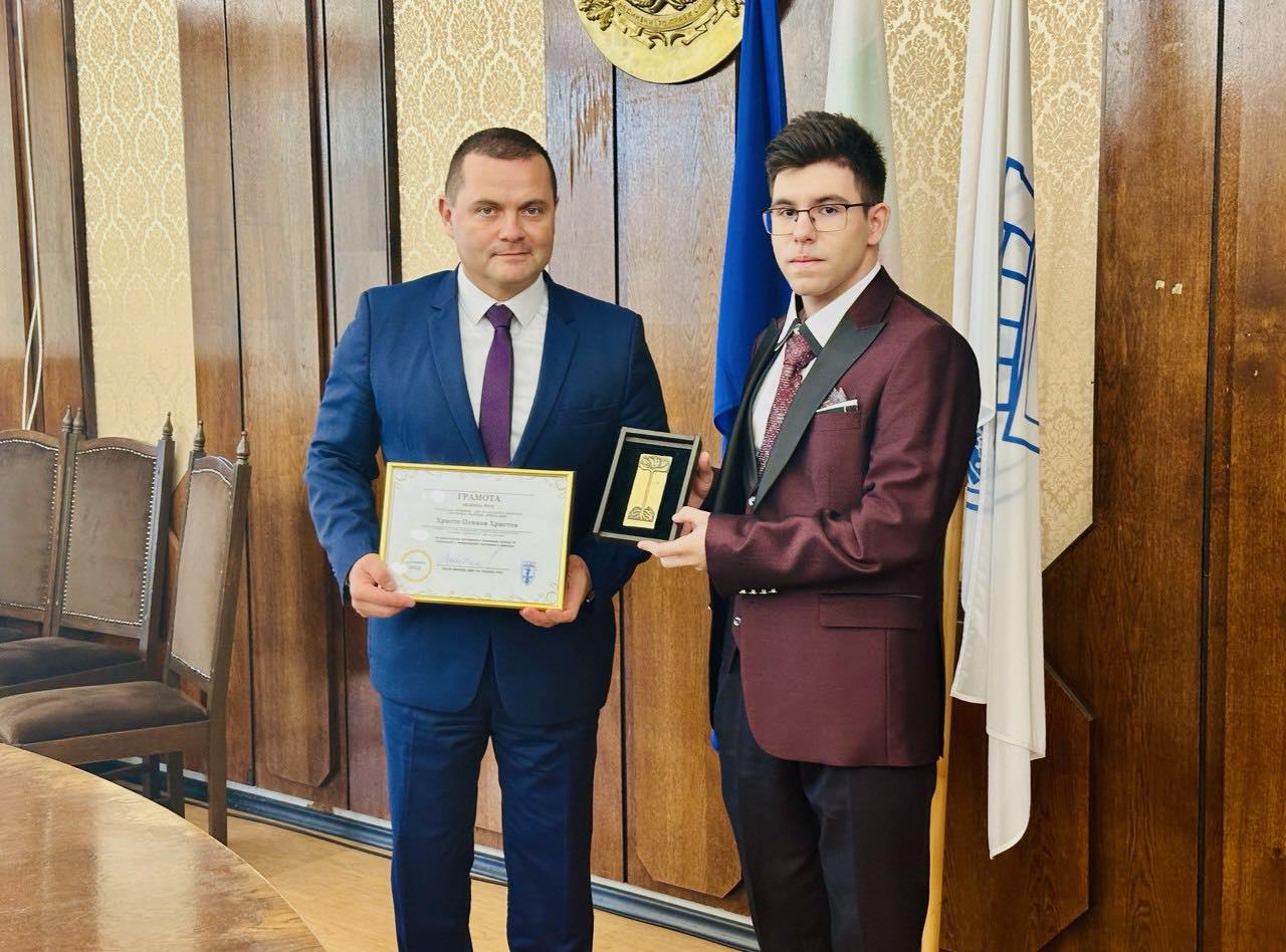 🏅 Христо бе удостоен с признанието за впечатляваща академична активност и отлични постижения през учебната 2024/2025 година, включително: