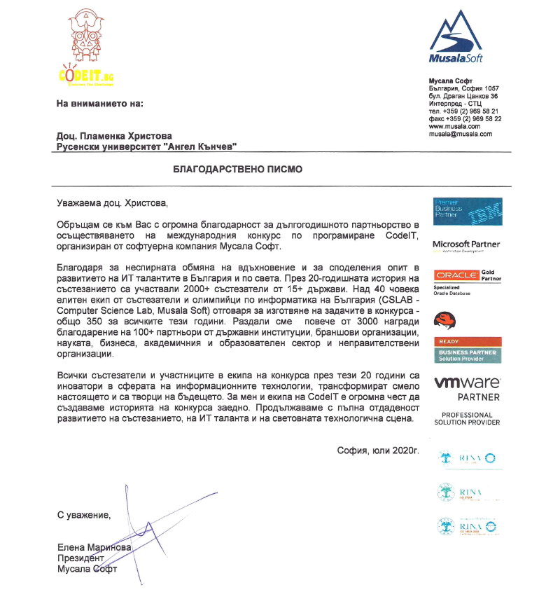 Особени благодарности и към техните ръководители – 👩‍🏫 доц. д-р Пламенка Христова и 👩‍🏫 доц. д-р Галина Атанасова от катедра „Информатика и информационни технологии“ при Русенски университет „Ангел Кънчев“, за всеотдайността, подкрепата и вдъхновението, което предават на младите информатици!