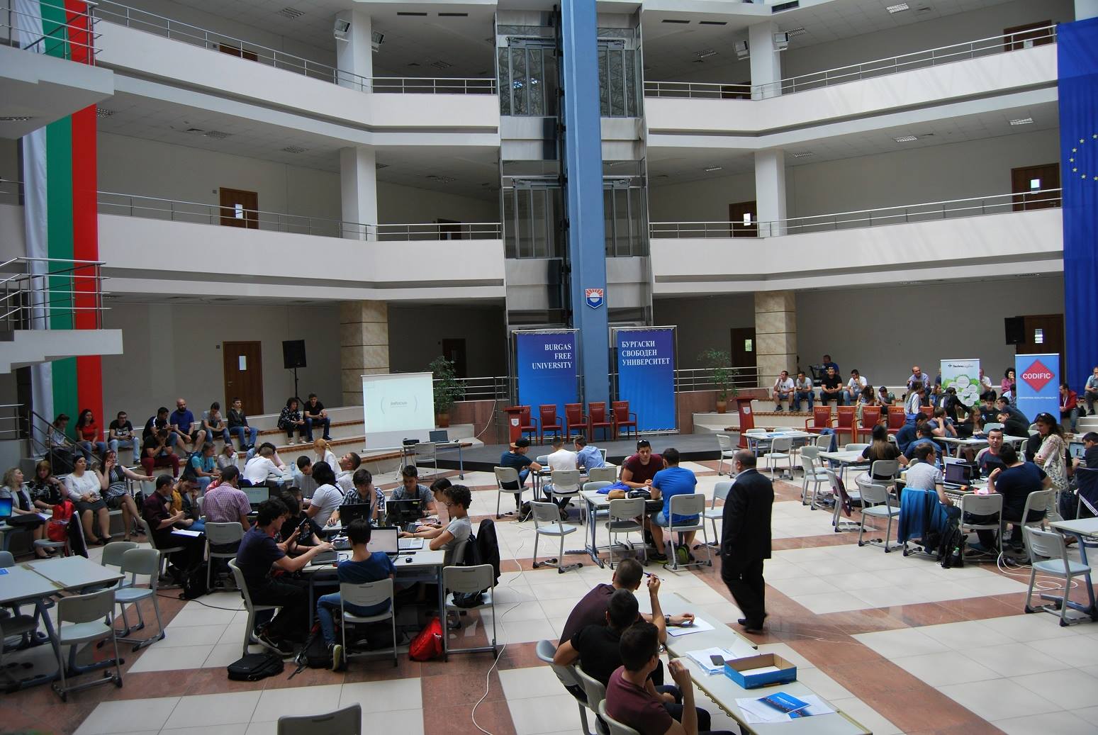 На 28 и 29 май 2018 г. в Бургаския свободен университет се проведе хакатон „Цифровият град и аз" под патронажа на Комисаря по цифровата икономика и цифровото общество г-жа Мария Габриел, която откри събитието.